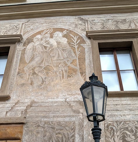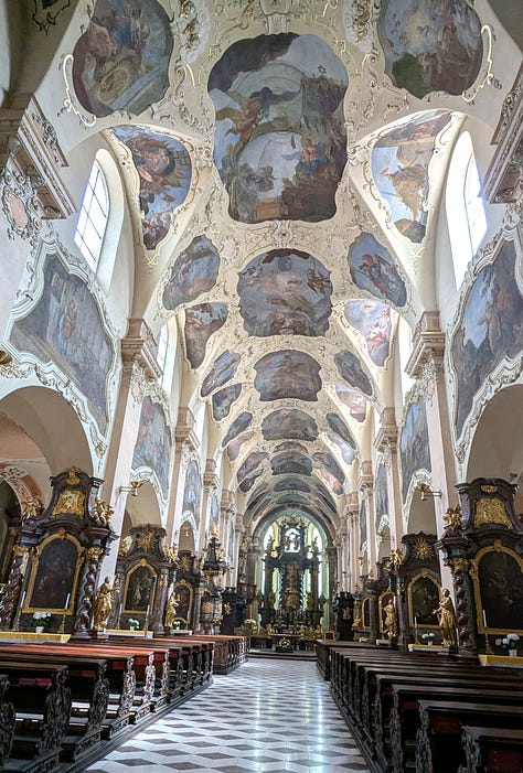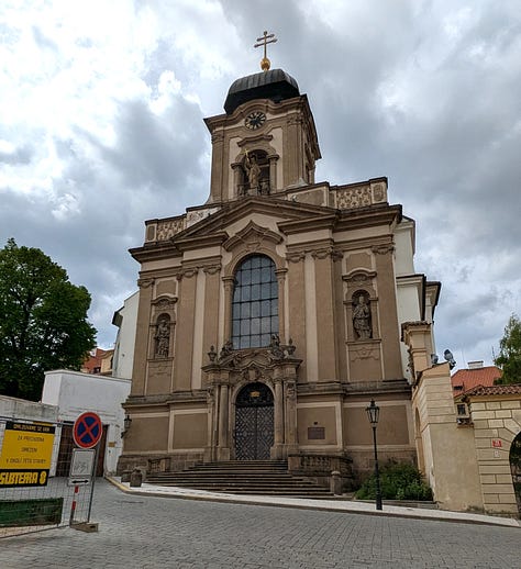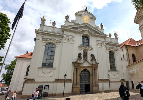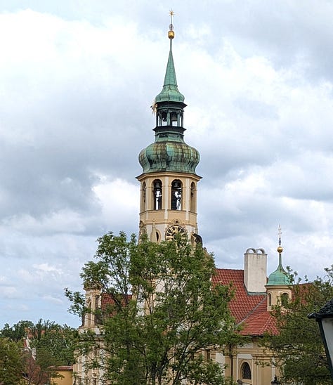 Carol and Dag took off on their own this morning to visit Prague Castle, which was high on their list of things to do while they were here. We saw the castle when we were here in October, so we hung around the apartment until we met up with them at noon in front of Strahov Monastery, another of their must-see places.